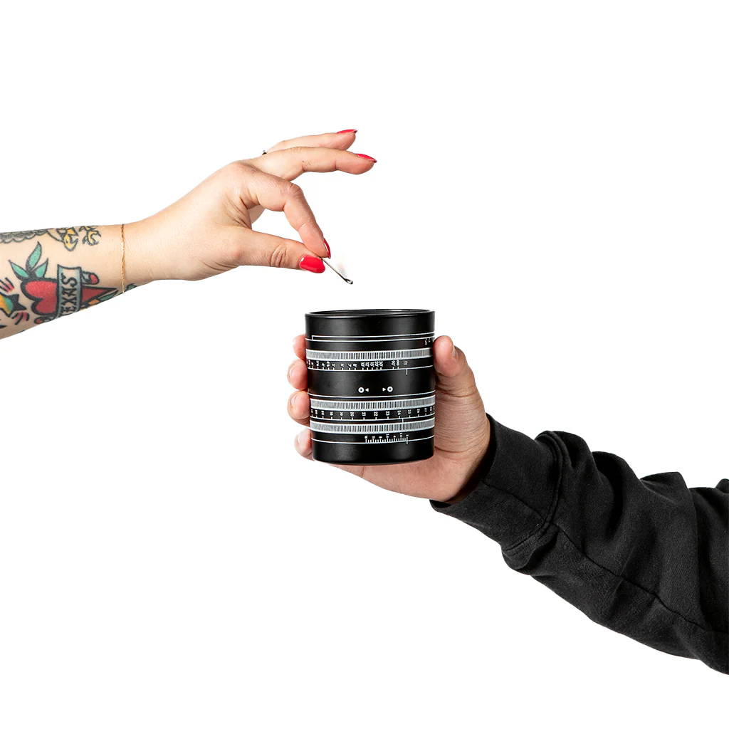 Need a little focus? Then light up this soothing, 100% vegan soy wax Cinema Lens Candle from our friends at Film Pin Society. Featuring harmonious shots of firewood, sandalwood, and sage all hand-poured in Brooklyn, NY, itâs a cinematic statement piece that will keep your love of film burning for up to 35 hours (trimming the wick between uses can extend that to 40).