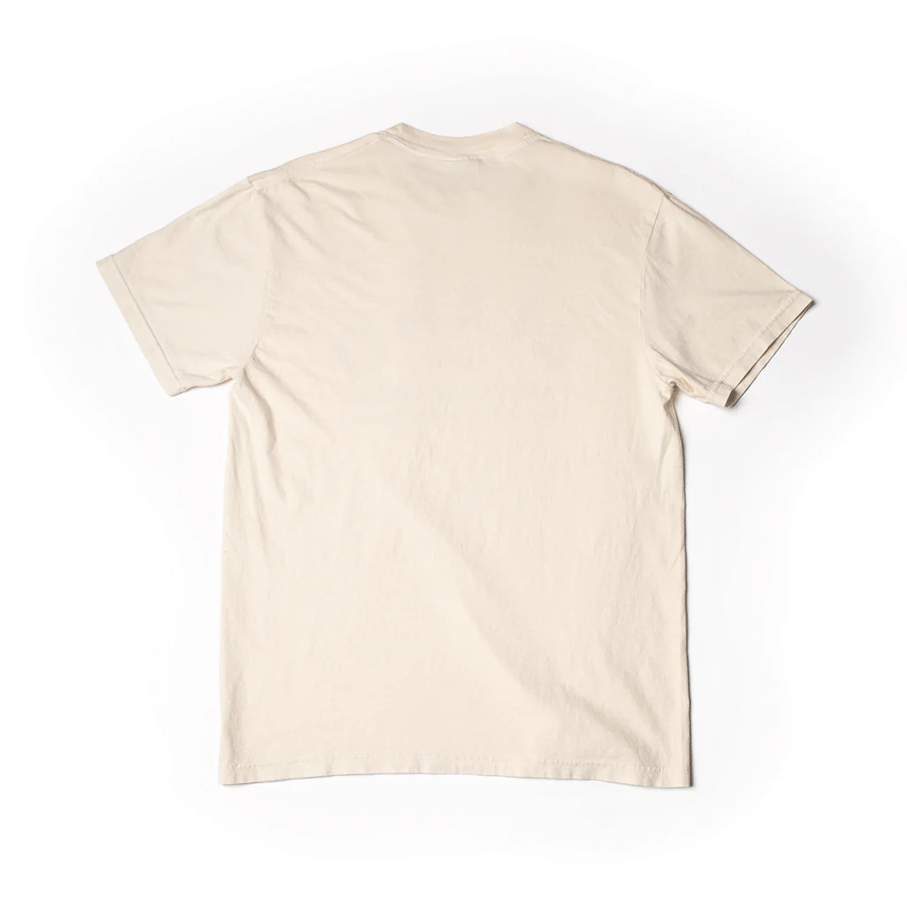 Printed on 100% cotton Comfort Color Ivory-colored shirts using Okeo-Tex certified low-impact dyes. Available in standard t-shirt and mid-cut styles.